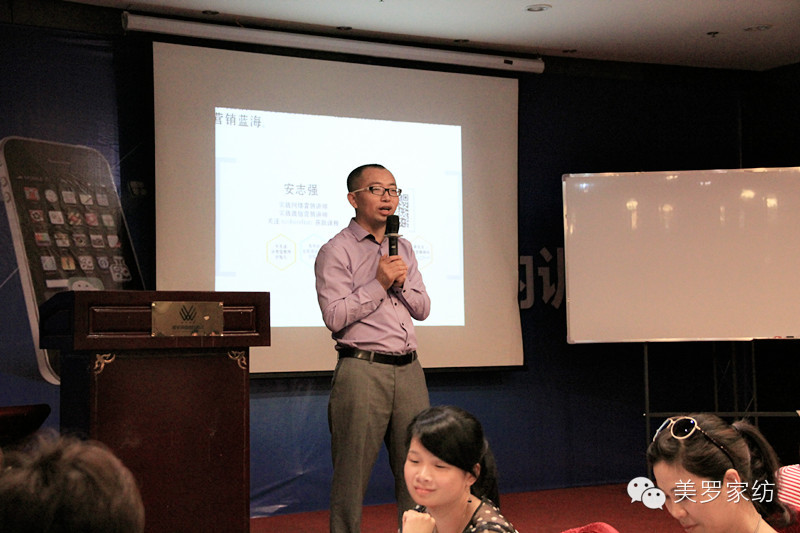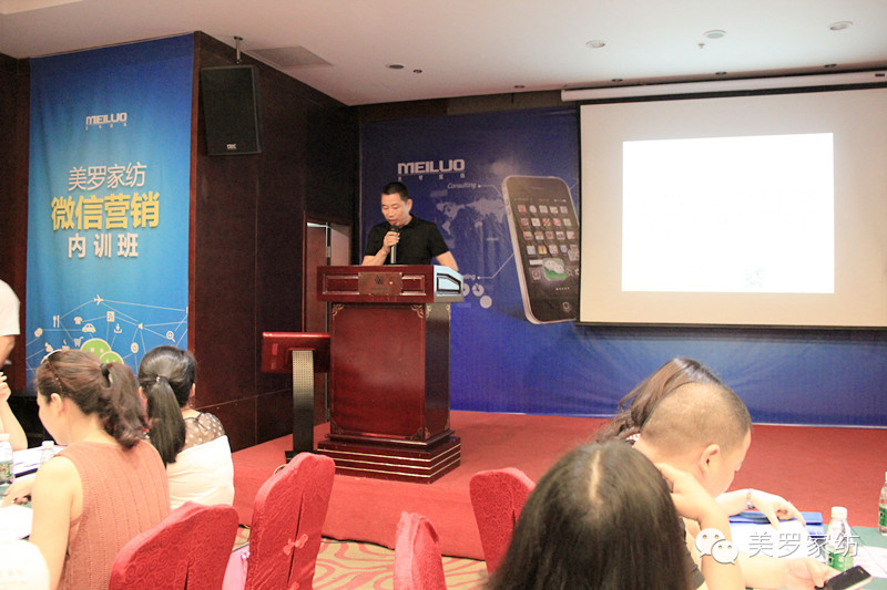 (美罗家纺董事长秦鹏先生为此次微营销培训致辞)